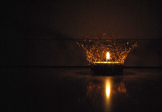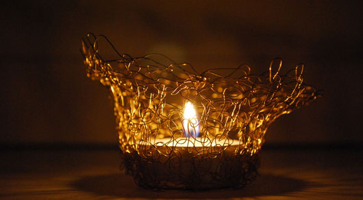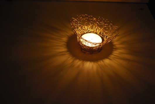 Silber- oder Golddraht und Omas Häkelanleitung führen zu einer edlen Hülle für einfache Teelichter: einen schmalen Streifen fester Maschen häkeln, der etwa 7 cm hoch und so breit ist, das er rund um das Teelicht reicht. Oder Sie häkeln gleich immer rundum.